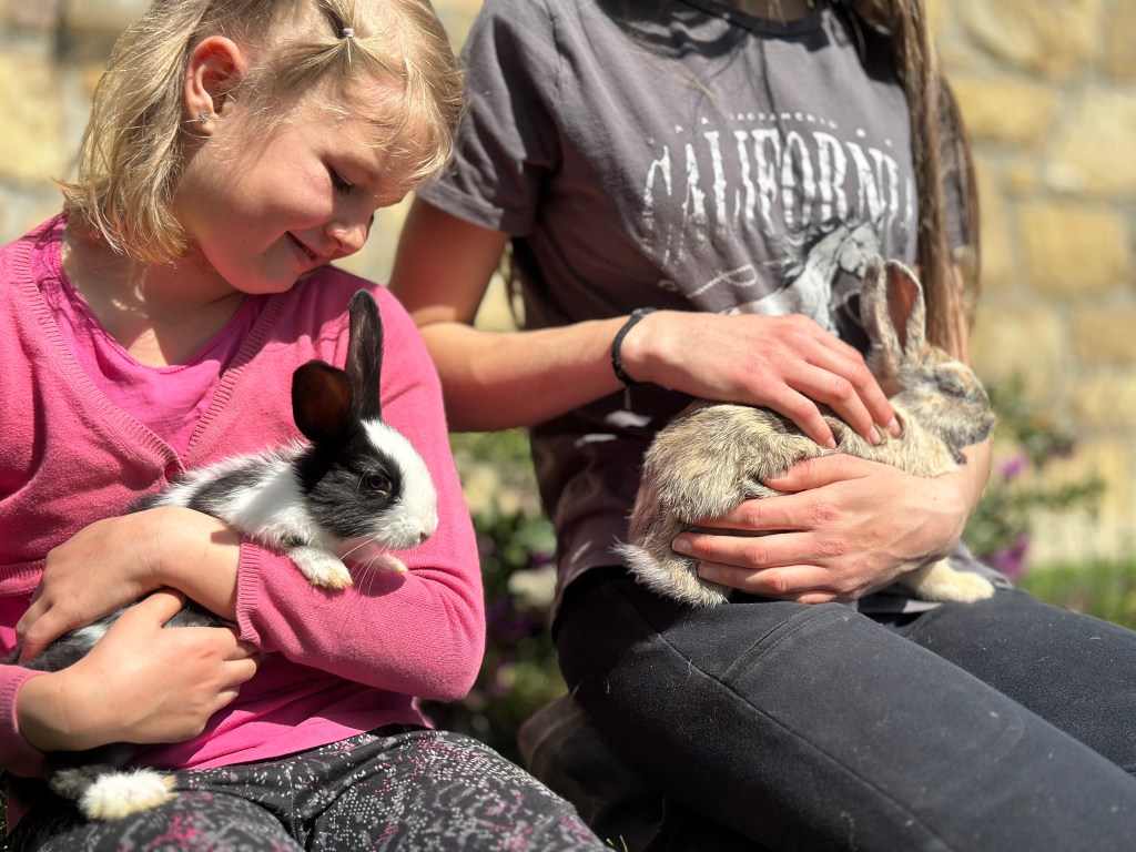 Otroci radi crkljajo morske prašičke in hranijo zajčke.