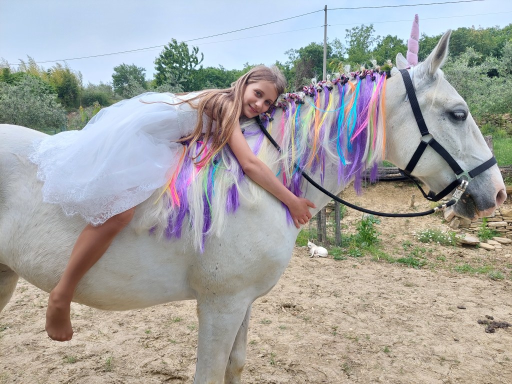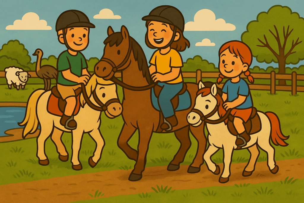 Jahanje je primerno za otroke od 3 leta dalje. Na voljo dva ponija, srednje veliki konj, lipicanec in dva oslička.